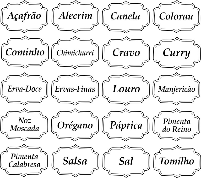 CARTELA RÓTULOS PARA TEMPEROS (FUNDO BRANCO E LETRAS PRETAS)